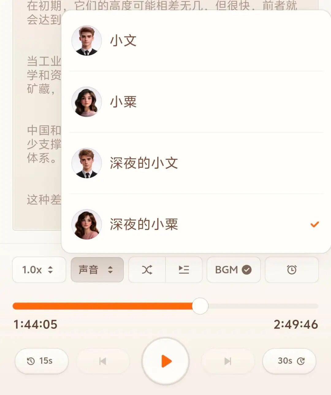 跟着喜马拉雅、获得、微信读书的音频化内容、各类书摘播客也都正在连续笼盖这个范畴。以至能导入脱口秀演员鸟鸟的声音做定制音色。